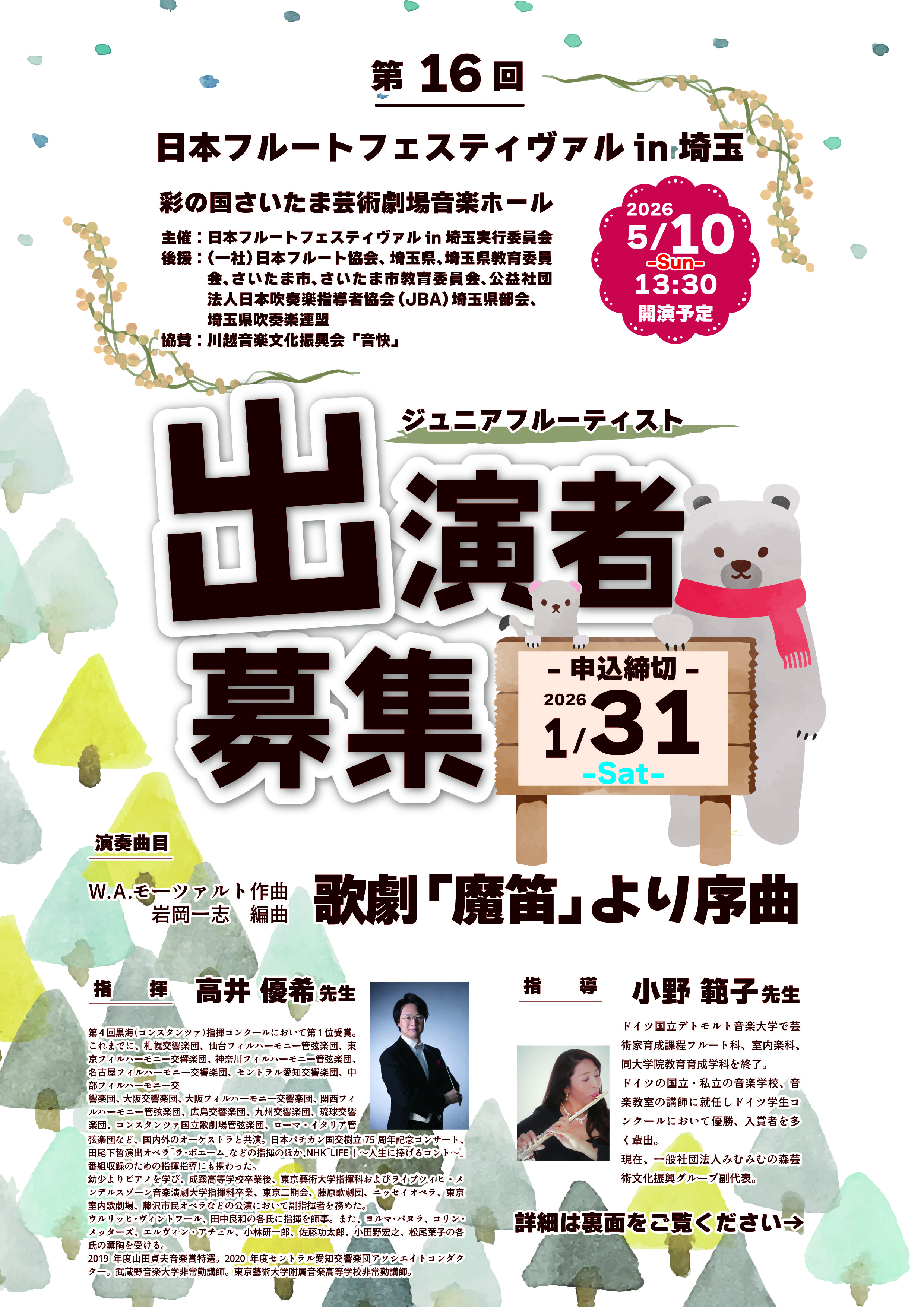 平素より「日本フルートフェスティヴァルin埼玉」の開催にあたり、格別のご支援とご協力を賜り、厚く御礼申し上げます。