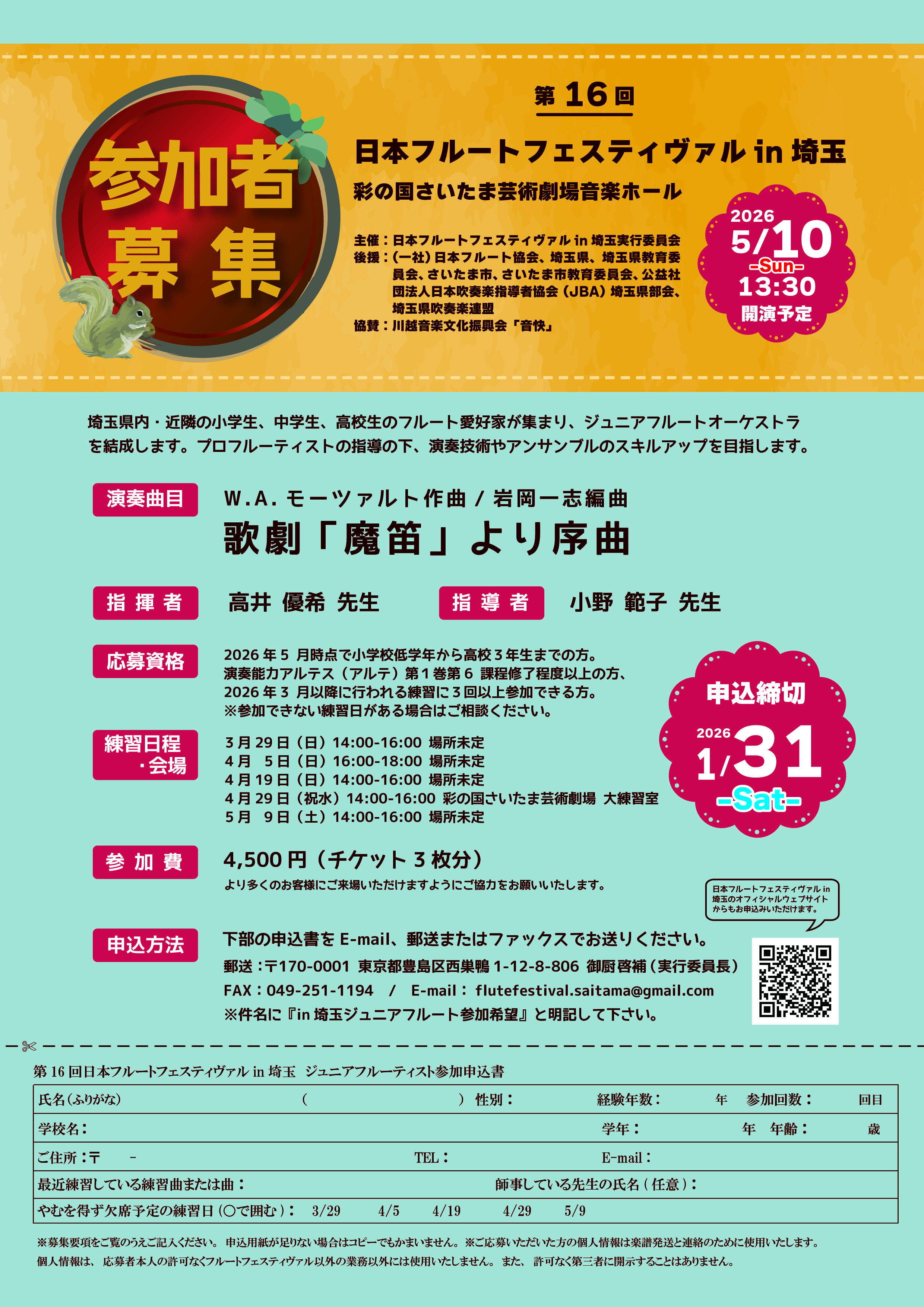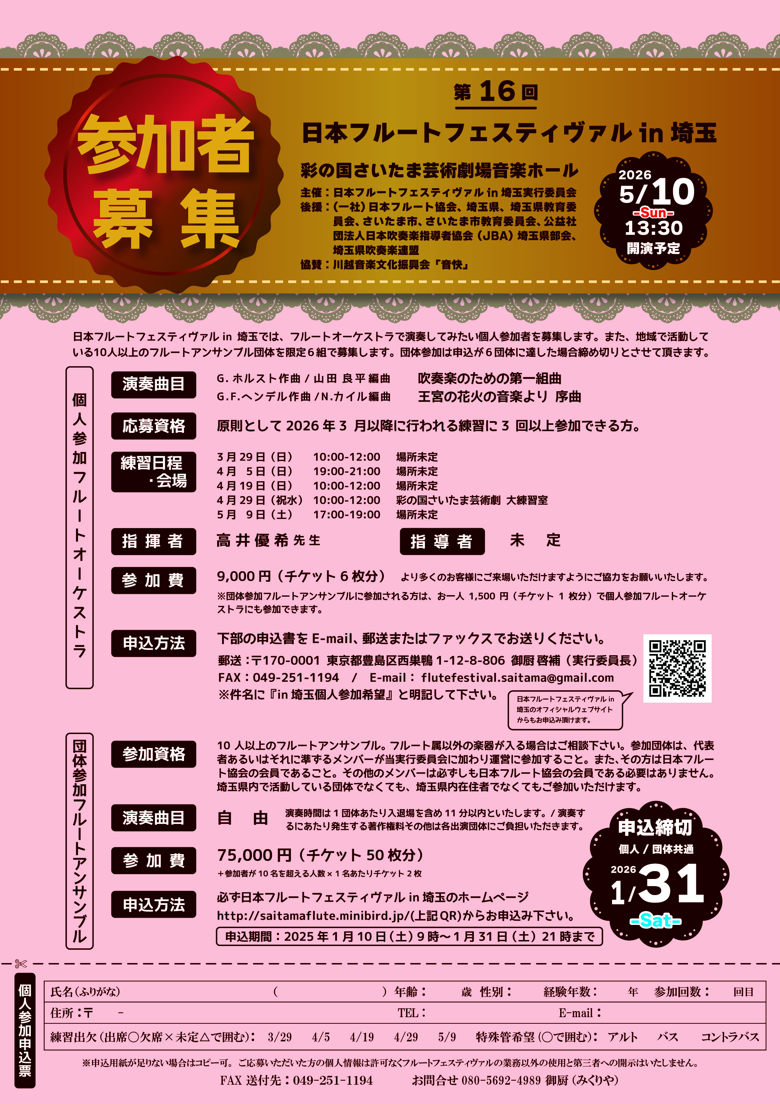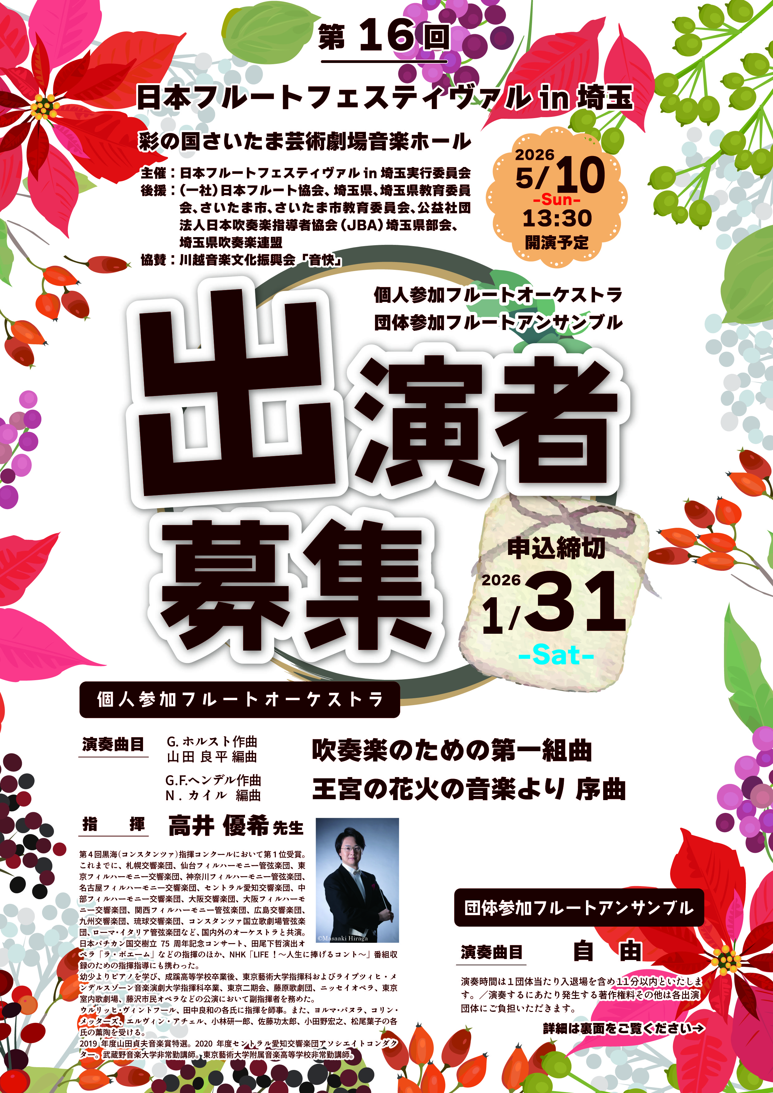 ≪申し込み先≫メール :flutefestival.saitama@gmail.com